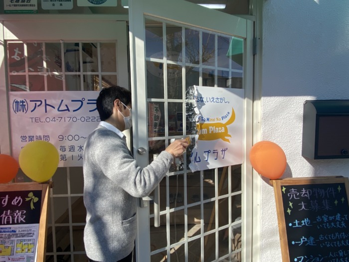 それはイカ〜ン‼️と店舗入口のシートの看板を剥がしました😊