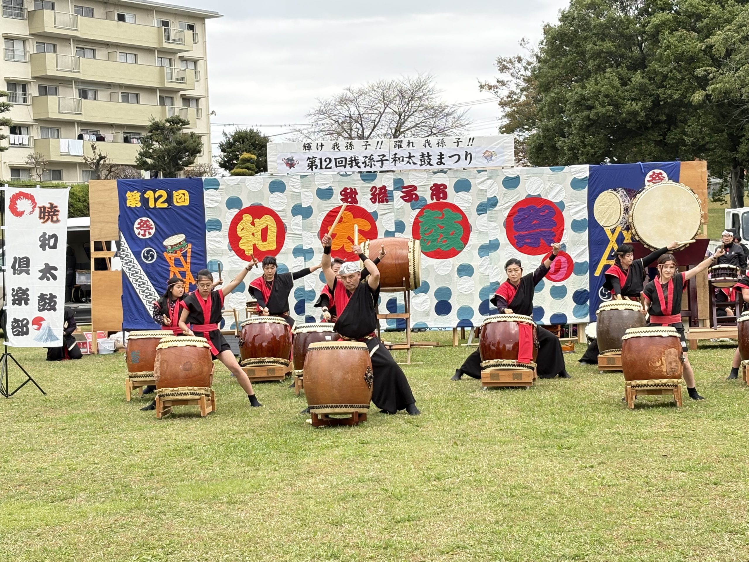 今日はアトムプラザの地元湖北台の中央公園で、和太鼓まつりがあるとの事で、またまた仕事をサボって見学に😅